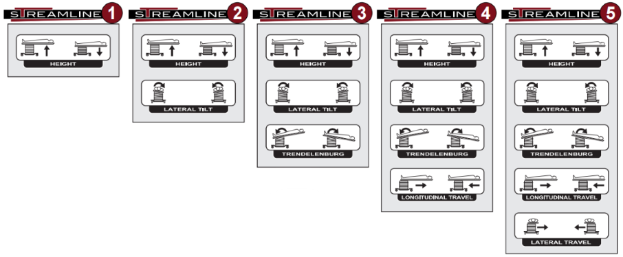The general rule of C-arm table pricing is: more movements = higher price. For each number of movements, there is a corresponding price bracket. The image below, courtesy of Streamline C-arm Tables, demonstrates the movements. At the top of the range are vascular float-top tables. These tables can be positioned in all the same ways as a 5-movement table, but are hand-controlled for the precision and speed that are necessary in certain vascular procedures..