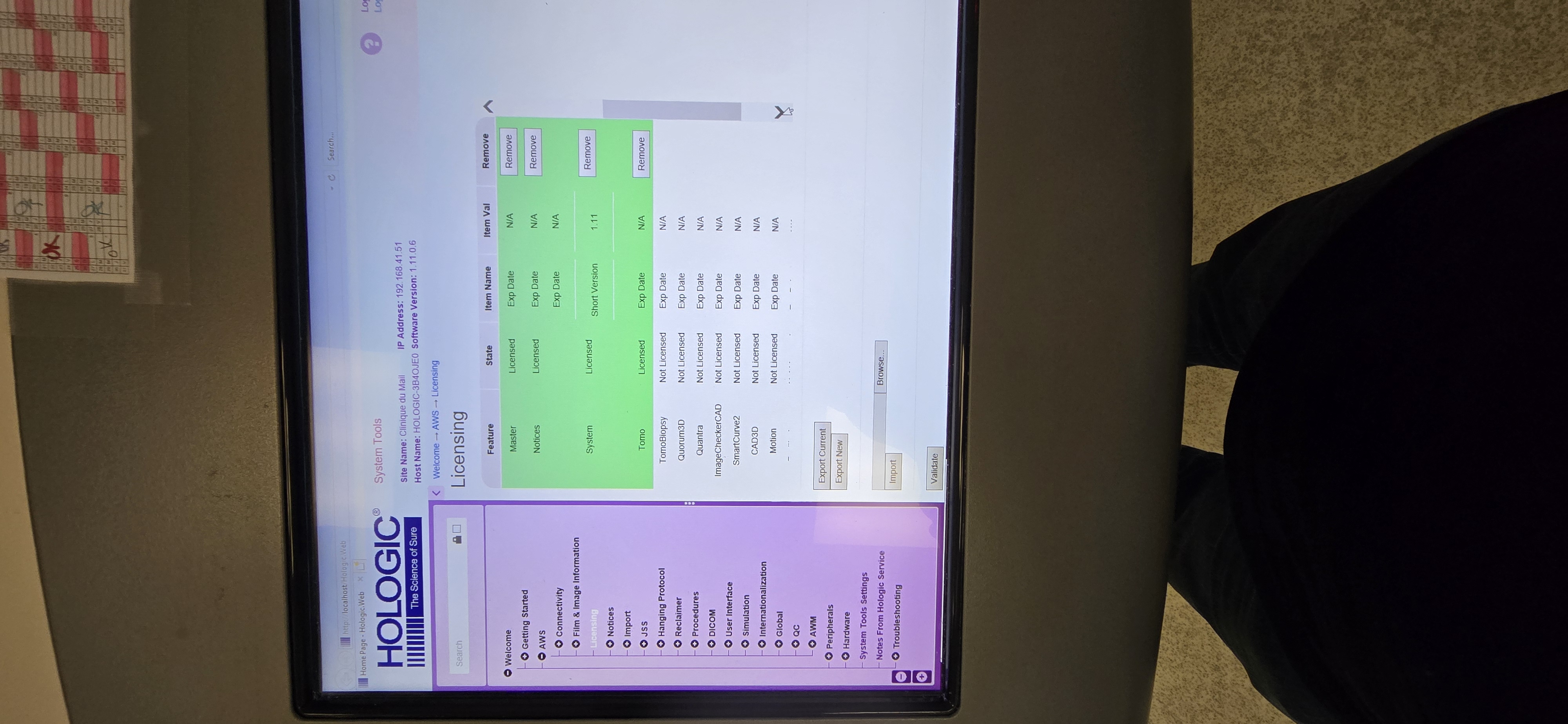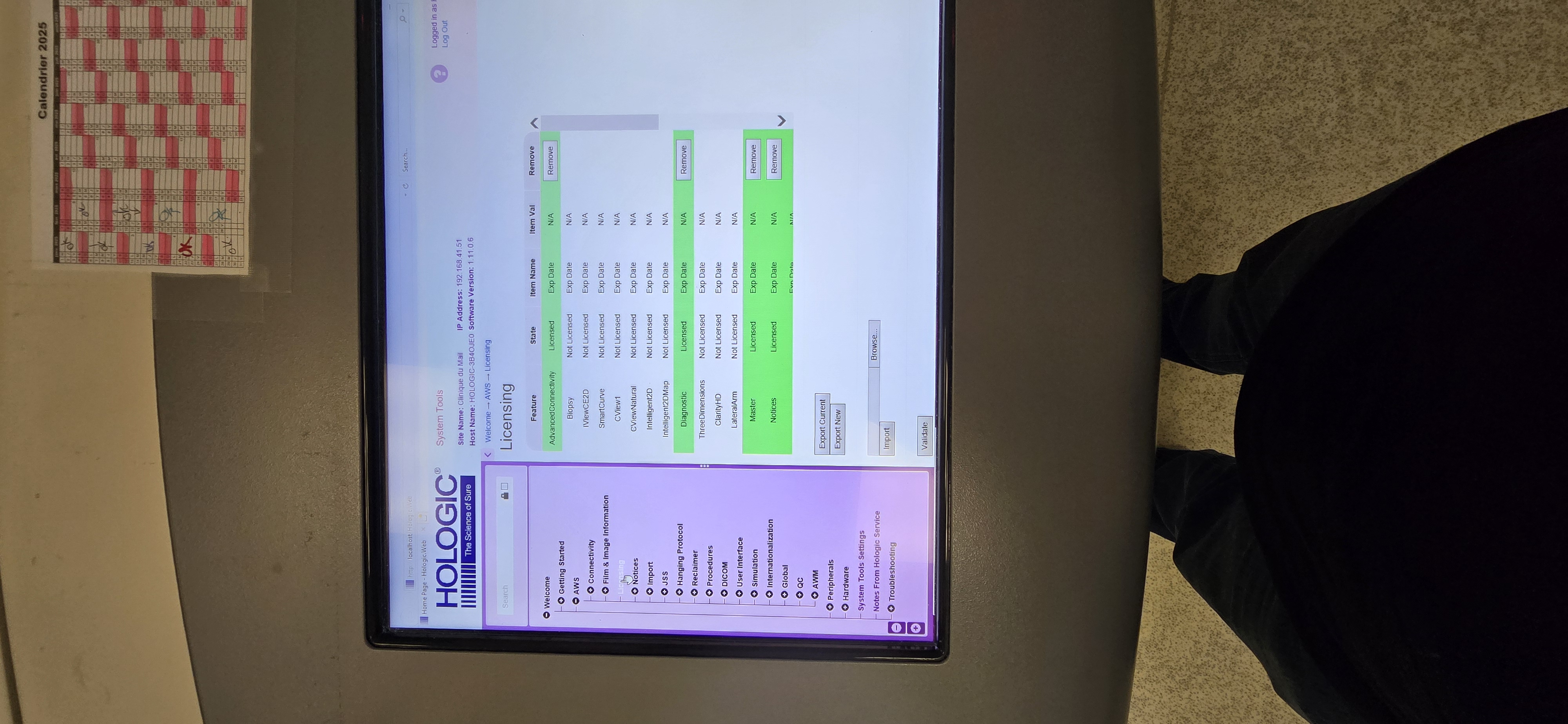 Licenses: Advanced Connectivity, Diagnostic, Master, Notices, System, Tomo