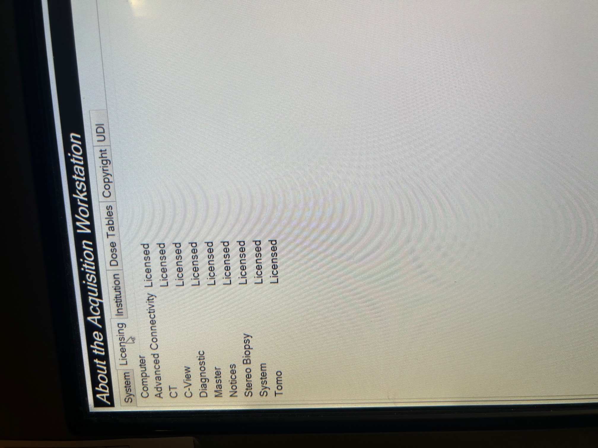Licenses: Adv Connectivity, Diagnostic, Master, Notices, System, Tomo