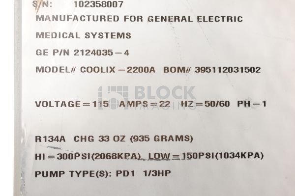 2124035-4 - GE - Cath/Angio - Coolix 2200A Chiller