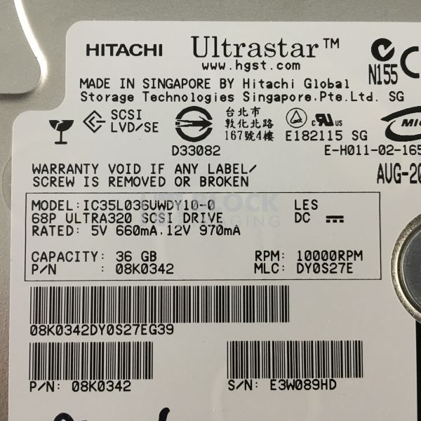 - Part Number: IC35L036UWDY10 08K0342