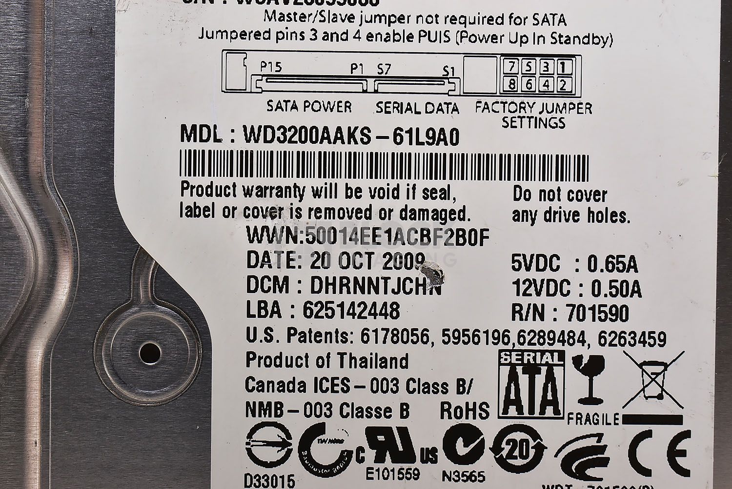 - Part Number: WD3200AAKS-61L9A0