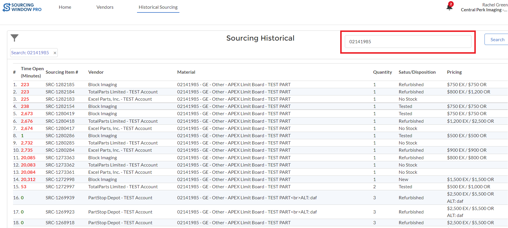 Use your team's history of quotes to view quote data specific to that part number, get an idea of which vendors typically have stock, and anticipate market pricing.